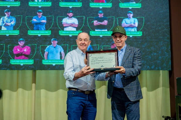 El pasado 4 de octubre, en el Hotel Bisinii de Ciudad del Este, celebramos la segunda edición del Desafío de Campeones Agroceres, un evento que crece cada año y se ha convertido en un espacio clave para reconocer a los mejores productores agrícolas del país. Durante la velada, premiamos a los productores con los rendimientos más altos en la producción de maíz Agroceres de las regiones Norte, Centro y Sur de Paraguay.